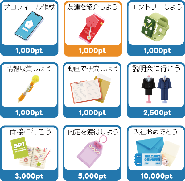 就活における行動の一つ一つにポイントが付与されます。